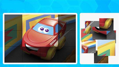 本作采用卡通风格的画面,以迪士尼动画《汽车总动员》为主题,界面简洁美观,色彩清新柔和,拼图中的卡通图画也十分符合儿童的审美。