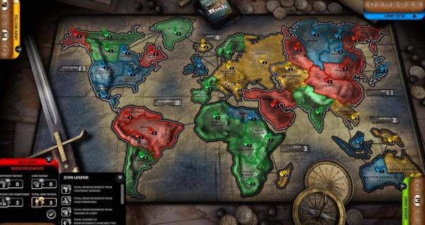 风险统治世界的游戏中文版是由磊哥游戏网站(www.njmuseum.cn)推荐下载的一款好玩的回合制策略游戏。《风险统治世界的游戏中文版》是Marmalade Game Studio基于经典桌上游戏制作的一款策略战棋游戏。该游戏支持三方混战,玩家可以与朋友和/或AI进行比赛、可以选择五种不同战略风格的AI、支持本地或网络联机对战。
