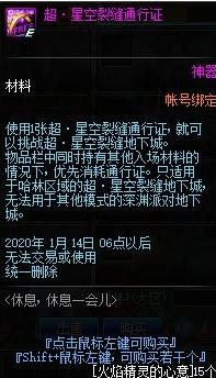使用1张超·星空裂缝通行证就可以挑战超·星空裂缝地下城。