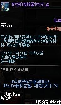 2、奇怪的增幅器材料礼盒是在南瓜球的新商机活动的活动商店中使用权能碎片购买获得;