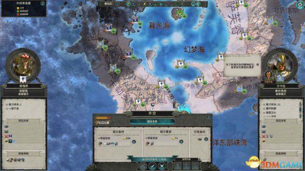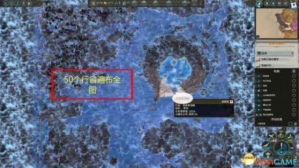 五十个行省遍布整个地图,初始位置所处于的洛瑟恩海峡(行省)显得非常渺小。玩家所有的探索和战略行动都以两种获胜条件为最终目标来进行。
