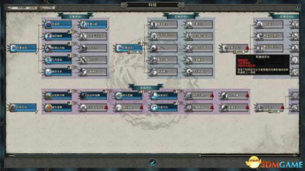 3、有的技能需要学习同支线前一个技能或者在位于的支线已消耗一定数量技能点来解锁,有的技能则需要达到要求的领主等级来解锁,具体情况可以随时开启技能树进行查看。