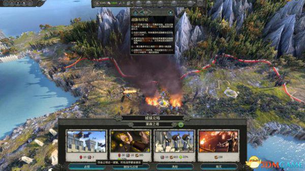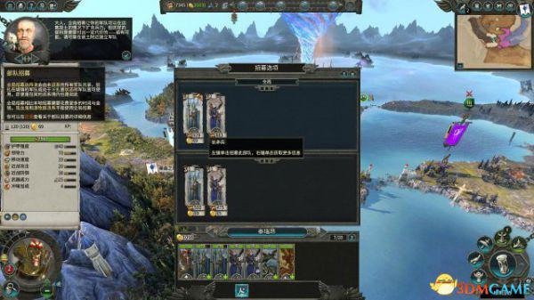 原来在笔者麓战之际已经有一支黑暗派系正式开启黑暗祭典,由于该派系位置距离阿苏焉岛过远,手动移动领主前往祭典城镇进行破坏不切实际,可以点击屏幕上方标注位置花费金币雇佣高等精灵佣兵对准备黑暗祭典的派系城镇进行破坏,佣兵的阵容实力随价格而定。由于连续征战并控制五个行省,我方派系拥有了不俗的经济实力,直接顾俑1W金币的高等精灵领主前往破坏。
