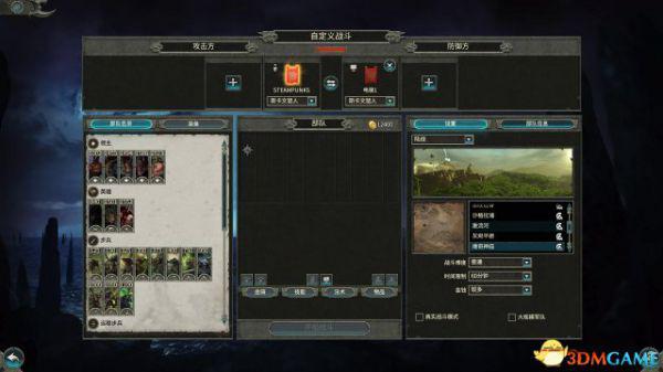 自定义战斗:玩家自行设定好包括地图区域、敌人领主兵种等众多要素后进行游戏。
