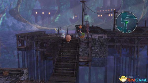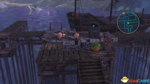 step14.前往蕯罗尼亚港都,去到港口3号地入口旁边的墙体前,让两姊弟变为长身人,搜刮上面的宝箱,获得少女的日记3×1。