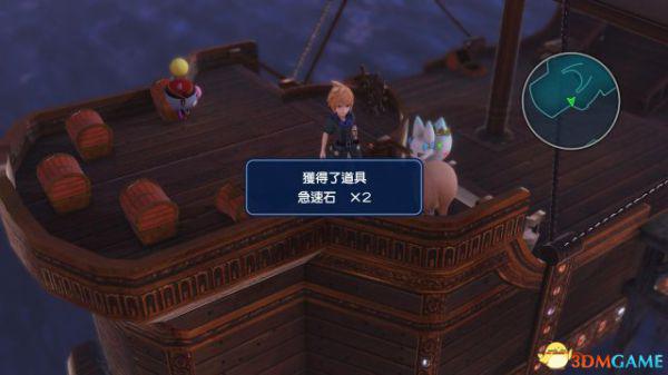 去到第三个漂浮岛上,搜刮宝箱(3/9),获得魔像需要的锯齿状利牙×1,然后将该道具送给魔像,那么一行人就可以前往第七峡谷2之焰。
