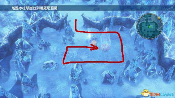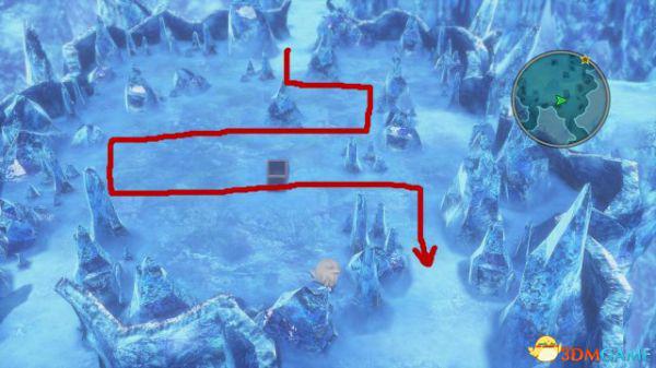 step5.在第2翼第一个分岔口北面的山洞内找到一个宝箱(5/13),宝箱内就有冰石×4。