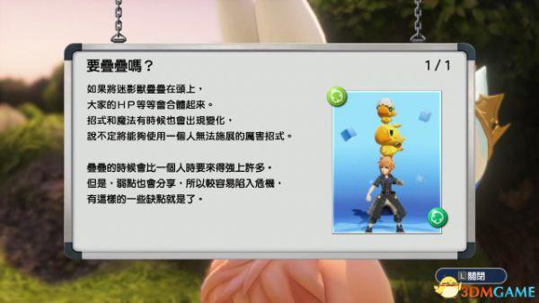 捕获了这只陆行鸟宝宝后,小玉建议两姊弟可以将陆行鸟宝宝放在自己的头上,但体型比两姊弟大的迷影兽无法叠到头上来,所以想让迷影兽叠到头上时要变成长身形态,想自己叠到迷影兽上时要变成迷你型态。
