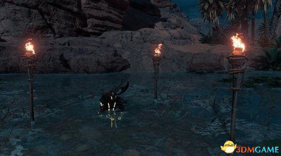这个隐者位置在白天不是特别好找,不过到了晚上火把点亮之后就明显很多了。