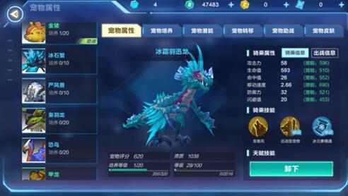 4、冰霜羽迅龙在新手村算是一只较为强力的宠物了,大家在获得蛮足龙前可以将其作为过渡宠物,用来挑战一些副本的伤害也很足,值得花费一些资源培养。