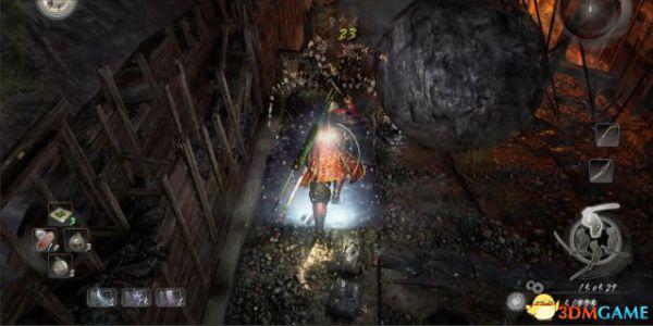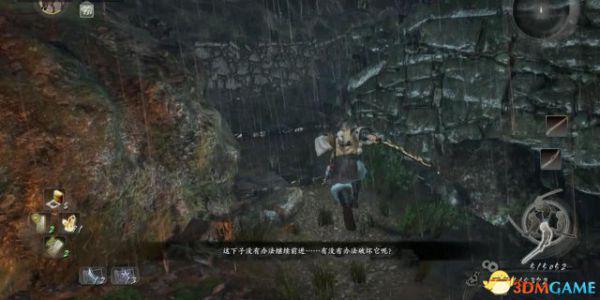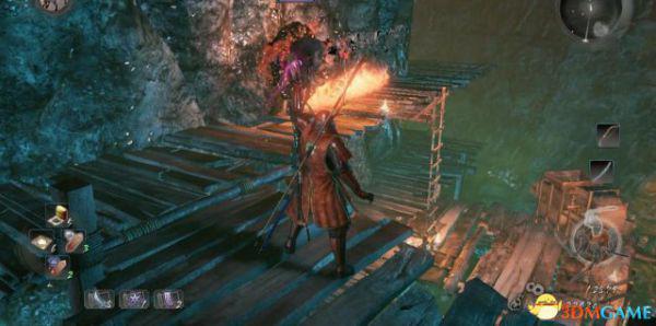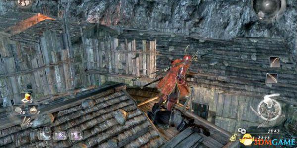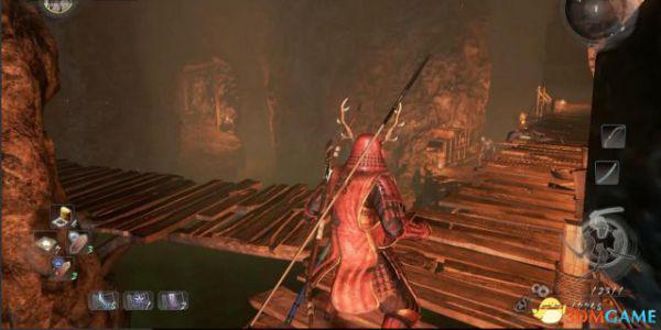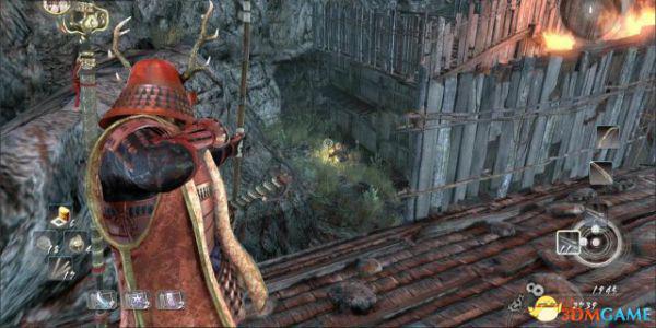 接下来道路都只有一条,我们要说的是如何来到刚才狙击我们的弓箭手所在的位置。在两具尸体处停留之后就会有陷阱压下来,站上去之后就可以来到上层。