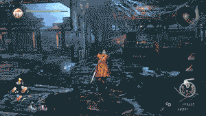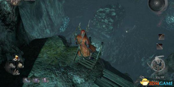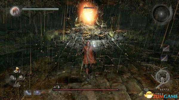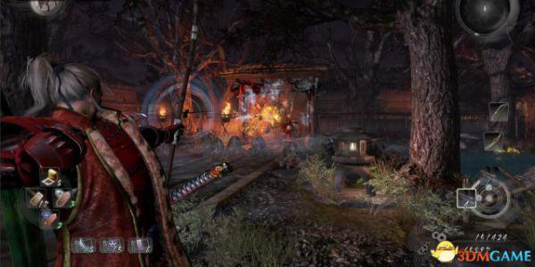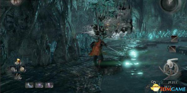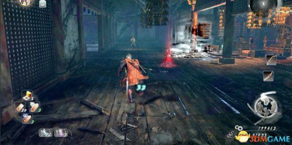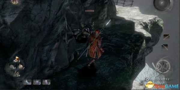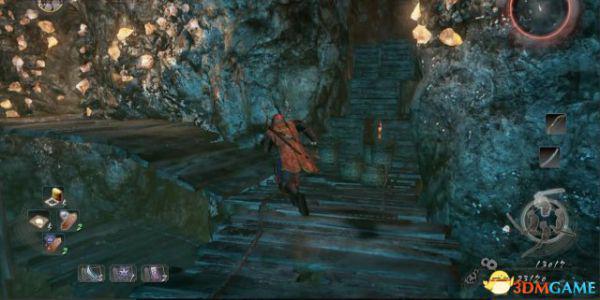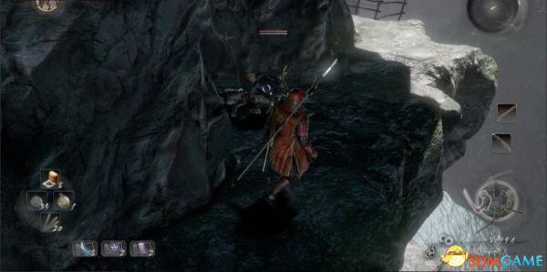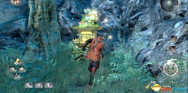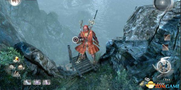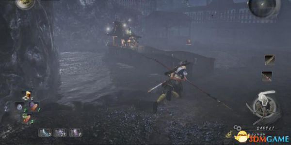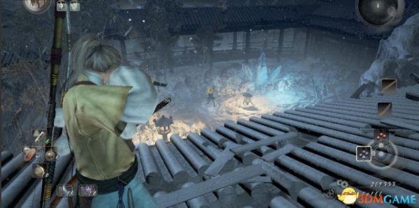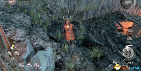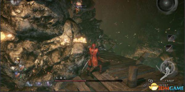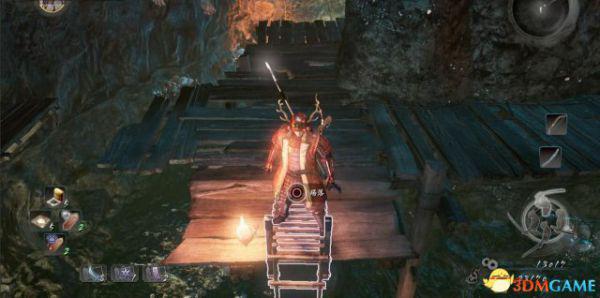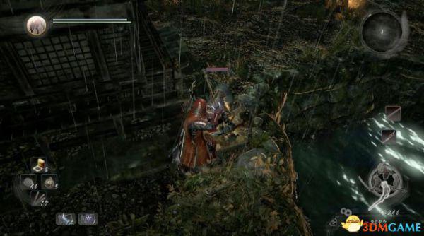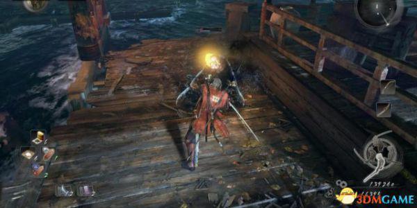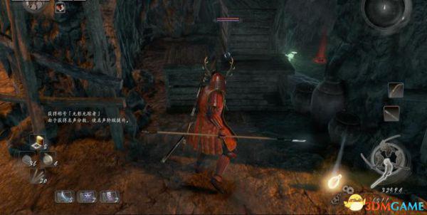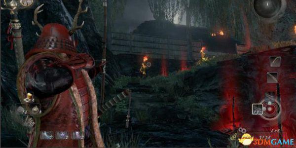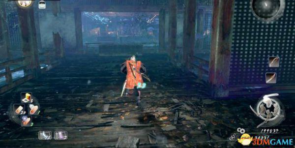 从神社附近的桥跳下去,可以一路跑过去干掉远程的炮兵,之后再去把灵石砍掉。这里如果用隐身的话可以不用打楼下的大鬼。
