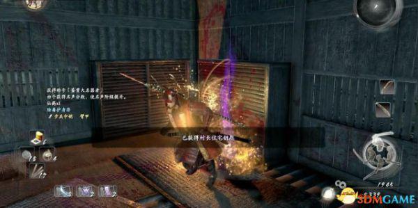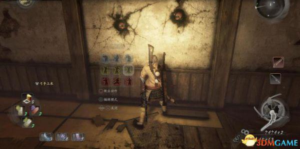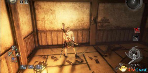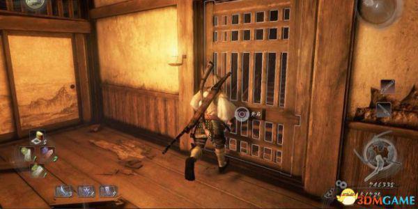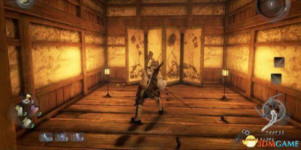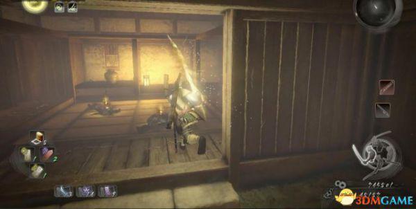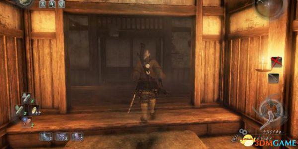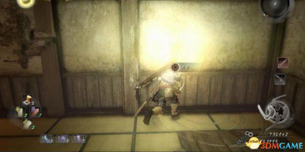 进入墙壁后砍破拉门,看到绿色的灵石,迅速砍破,不然会被屏风后的忍者攻击。