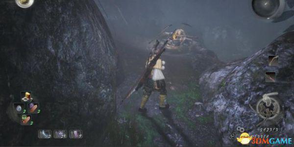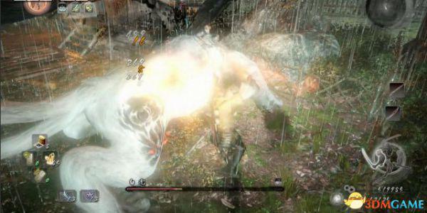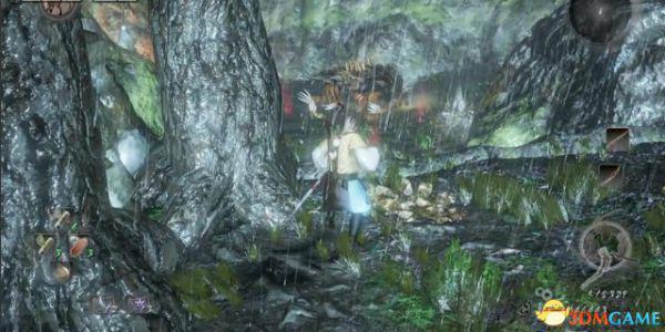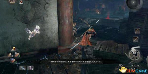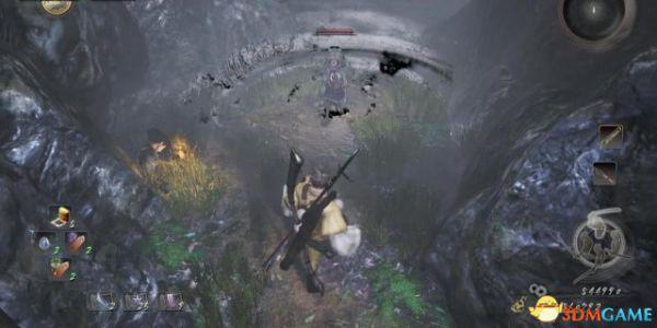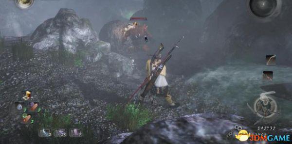 这片区域内有一团雾气,其中会出现一只天狗,基本上是游戏内现阶段最强的杂兵了,最稳妥的出手时机是它从天空俯冲下来,或者从空中放完气刃之后的时候,在没有熟悉招式的时候建议不要随便出手。