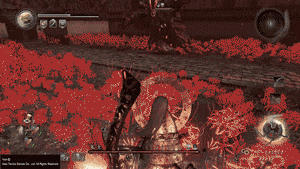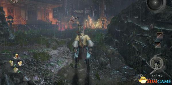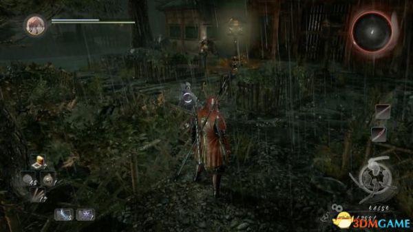 顺着第一个神社一路往下走,向着右侧有彼岸花的地方走过去,路上有轮入道出现,这个怪物比的弱点是背对着你的脸,那里有黄色的缺口。