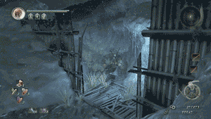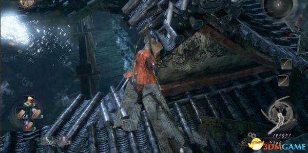 出门之后前方又是一只鬼,这里尽量不要用守护灵,之后留着有用。过了鬼之后前方有一个瞭望台可以往上爬,从顶部再次跳到房顶。