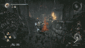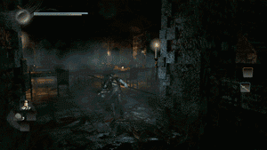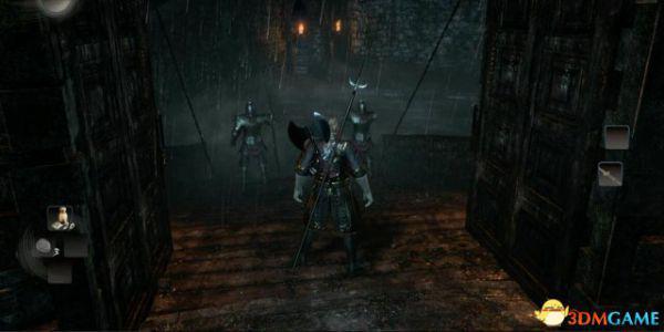 从存档点出来往里走,会看到一扇大门和一个卫兵。这个大门只能从另一侧打开。打卫兵的时候注意不要太靠前,深处还有一个卫兵。