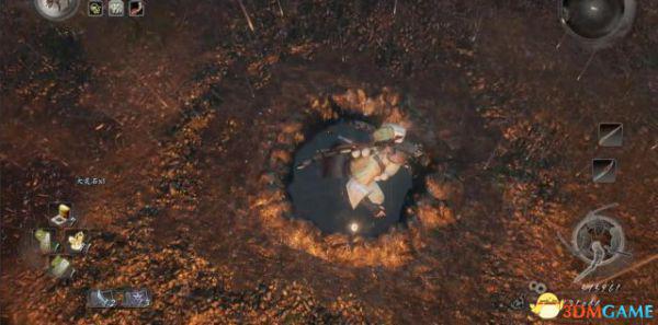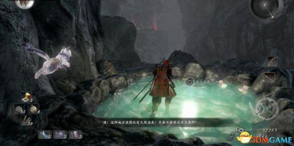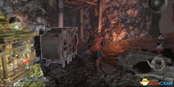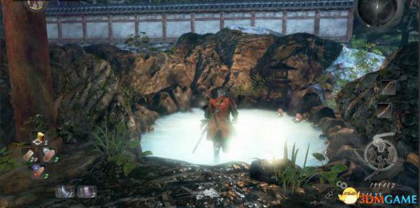 走过去可以看见鬼和温泉,鬼前方的石头也可以推下去砸死一个敌人。