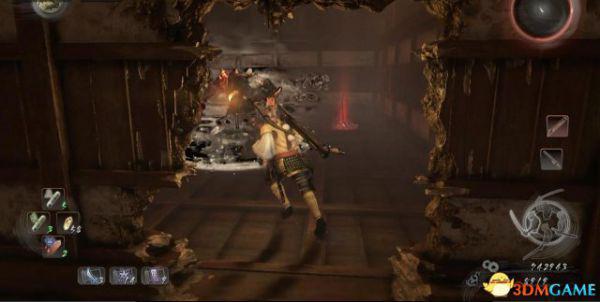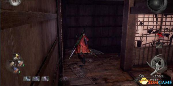 一路下去之后房间内有一只双刀鬼,比较难对付,可以开“九十九武器”一套带走。房间内就有可以推动的墙壁。