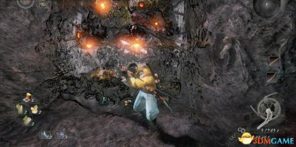 独眼鬼的身后走下去可以看到第二个灵石,这时候前方有一只鬼和一只大入道,很难缠,不过这里我们不用打,从右侧绕道后方破坏灵石即可。