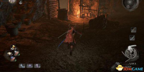干掉他之后一路往前走,这里有两个杂兵,一个背对着你,另一个蹲倒在地。为了避免陷入混战,我们可以考虑用石头勾引其中一个,或者慢慢走上去一套带走第一个杂兵。
