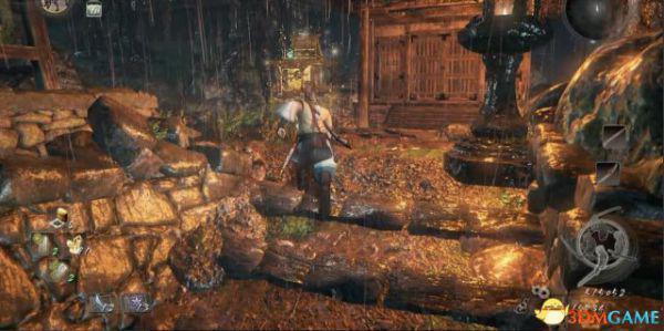 从神社出来走到刚才的地方,有一个楼梯可以上去,但这里我们先用远程武器干掉一个用弓的忍者。