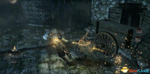 存档之后回头往悬崖上走,可以跳到房顶,绕过一堆怪物。从后方爬上房顶,一路往前走,视野范围内远处房顶的敌人尽量早点用弓干掉。