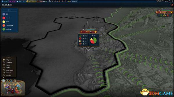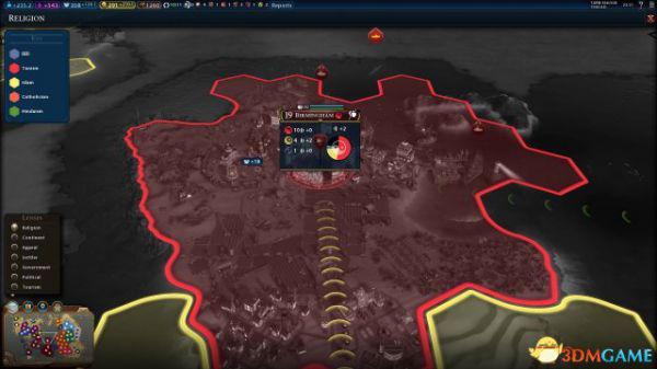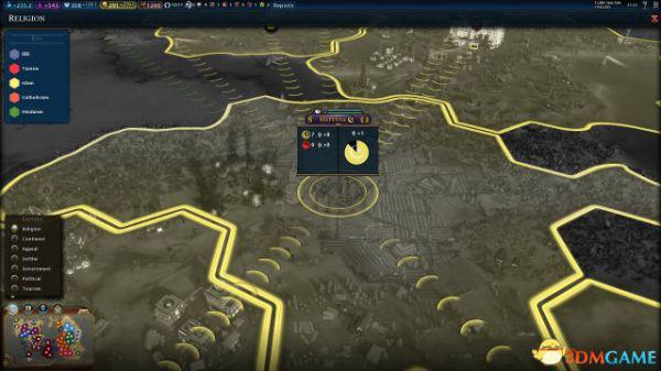 总结一下,圣城产生4点压力,圣地产生2点压力,无圣地产生1点压力,无主流信仰的城市不产生压力。各个城市产生的压力会根据一些距离、政策和信条调整,因此会出现小数点的情况。
