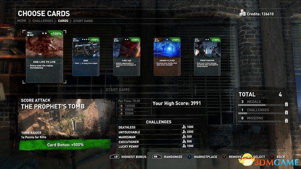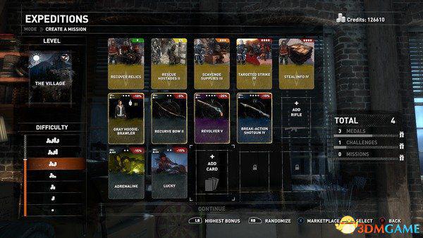 自制模式(Remnant Resistance):这是通过玩家自行设定任务-完成挑战来运作的模式。这一模式包含5个任务,可以是收集一些文档,或者捕猎动物,或者获取高价值物品,等等。整个挑战可以是好友已经设置好的,也可以自己来创建。在创建时,可以设置劳拉的装束和武器,时间、地点、天气等,并且设置5张标准卡牌。可设置的任务各有不同的难度,例如解救人质是一个普通等级的任务,而放倒一只熊就是高难度目标。任务越困难,点数回报就越多。但你必须先自己完成挑战,才能将它提交到好友排行榜。这个模式非常类似于 《杀手:赦免》的契约模式。