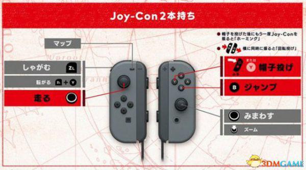 - 虽然游戏有很多种操作方法,但是官方建议以双手分持Joy-Con手柄的形式游玩,因为这样挥动手柄更方便,很多操作挥动会比按键更有效果(例如爬杆,挥动手柄会爬得更快)。