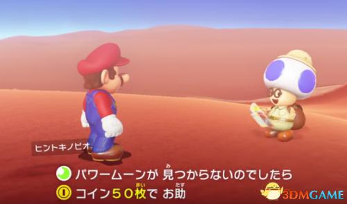 - 每个王国完成故事线后都会出现”奇诺比奥提示员“(和amiibo大叔一起),给50金币给他就会在地图标一个月亮的地点给你,后期用来收集月亮很有用。