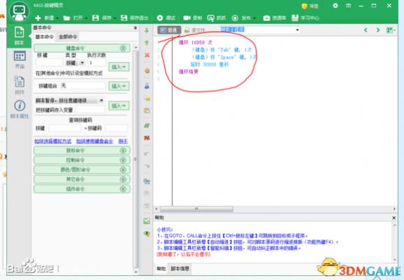 设置方法很简单,创建脚本,加入循环指令9999+,Tab按下(菜单)空格按下(防止掉线时候弹出提示确认),30000毫秒就是30秒一次循环,保存,设置热键执行开始就行了,需要停下时候按热键停就行了,默认F10开启,F12关闭