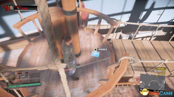 加勒比海滩区域,从区域边上的梯子或者灯塔那里上楼,来到海盗船的桅杆那里。