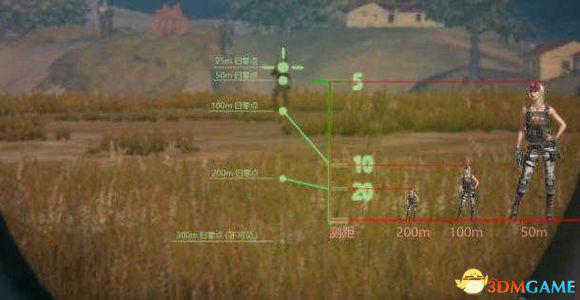 自带瞄具还是很好用的,从上到下分别是25m内,50m、100m、200m的射击点