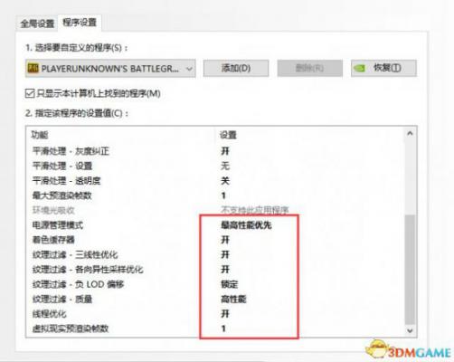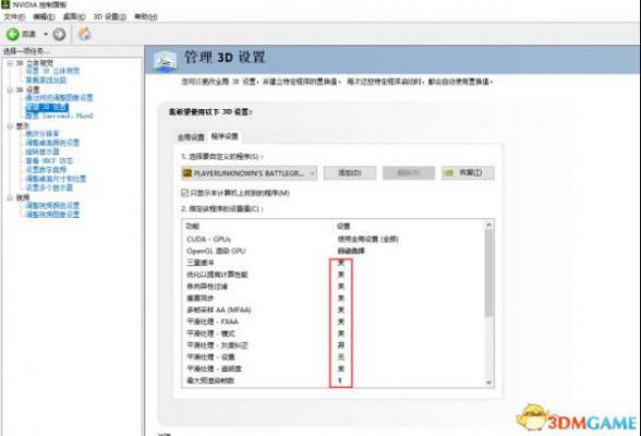 3D管理设置添加绝地求生程序,把消耗显卡资源的项关掉,提高性能的打开,建议不要使用全局设置,physx处理器设置成你的显卡,数字震动不影响帧数会让色彩更明显个人调80.个人不建议中低配置机器使用reshade软件,会降低帧数(亲测),N卡数字震动足够了.