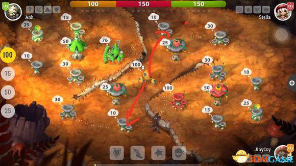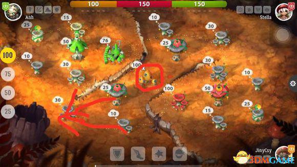 开局如图百分之一百兵力出兵。需要2线同时出发。如果顺利。2路到了基本就可以升级