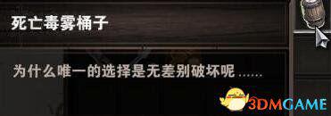 在船上拿到骷髅钥匙打开门后迅速双击一个死亡毒雾桶子,是可以在桶子被打破前拿到的。这里可以存个档多尝试几次。注意桶子很重95公斤别超重跑不动被毒死。