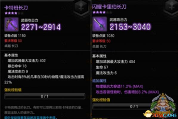 想要打出高额的伤害自然不能少了一把称手的武器,符文剑士武器选择空间不大,因为是双手职业,所以建议使用专属武器:卡特班长刀,如果有新散件武器闪耀卡里伯长刀也是可以使用的,追加属性如果是两条极品属性,那么实际效果不输给卡特班长刀,并且闪耀卡里伯长刀的价格会便宜很多,当然这是个吃强化的游戏,如果强化等级相差过大,那么还是选择高强化的武器最好。