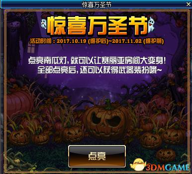 点亮南瓜灯,就可以让赛丽亚房间大变身,全部点亮后,还可获得武器装扮哦~