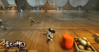当然,并不是所有的场景都如此的平和友善,在凶险的副本中有着更多的可互动元素。如可被破坏的木桶和栅栏等。这些场景元素在被破坏后,有时会掉落各种BUFF效果供玩家拾取,可以提升角色的速度、攻击或恢复生命。