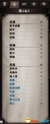 在主加战争的时候要保证气系2点(传送用)水系1点、死灵1点(水+死=血雨)、火系1点(思绪平静)、变形1点(变色龙隐身术)、恶棍1点(肾上腺)以上这些点数最好用装备凑齐否则要损失投入战争的点数也就是损失伤害。气系可以用技能点加一点,毕竟两点的气系装备不是辣么好弄。然后猎人至少投入两点技能点。在战争满点的情况下就可以点远程、恶棍、猎人了个人建议优先远程跟恶棍,毕竟弓手面板跟爆伤才是关键。但是点猎人在高地上也是很牛B 的。