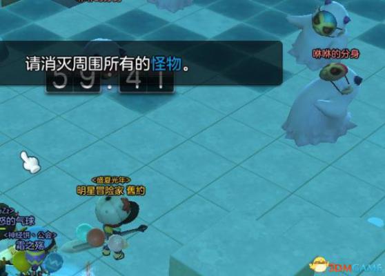 3、高台上召唤出咻咻的分身,BOSS会有减伤BUFF,并且在一定时间后放出高伤害的锁定黑球。这个时候需要玩家第一时间上高台清理干净咻咻的分身。这是打BOSS最关键的地方,这里处理好了什么都好说。