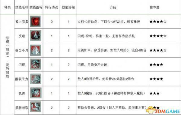 盗贼-刺客技能伤害是很一般,所以还要学变化系,隐身+变鸡,一般都是作为收割,打状态用,所以才智不能太高,保证是队伍第2,第3个出手顺序就行。先让战士打出控制,法师AOC消耗,然后刺客位移过去收割,刺客双持10,恶棍5,点必须点满,这样普攻+暴击,加个变鸡,敌人瞬间废了!!!所以2级变化和死灵吸血必须学的(也可以装备加成,不用浪费技能点去学)
