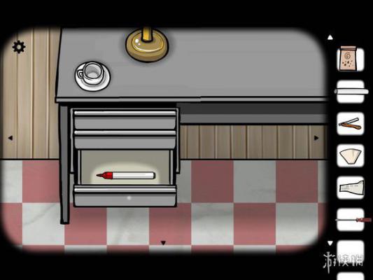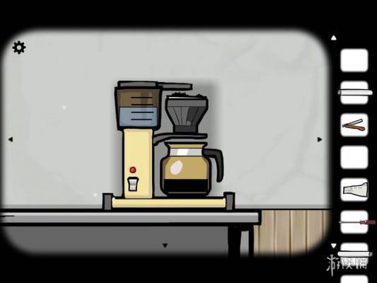 收集可用道具,柜子里拿咖啡,文件柜里拿图纸,刮胡刀,咖啡滤纸