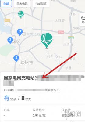 4、我们点击这个充电桩标志会看到该处充电桩的详细信息,包括有无空余充电桩以及收费标准等。