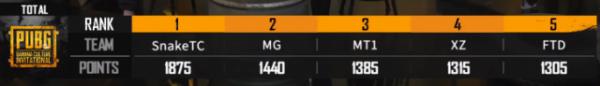 总的来说,SnakeTC虽然一次鸡都没吃到,但是通过集中医疗资源苟活,每场比赛都拿到了很靠前的名次,现在也是站在了总积分的第一名。