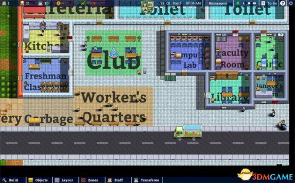 清洁度其实很好提升,每个房间尽可能放置一个垃圾桶,招收一定数量的清洁工(取决于你的校园面积),然后最重要的是要把校园内部铺满地砖,道路入口处也要铺(因为那里是学生们的必经之地)。这样一来,校园清洁度的评级刚开始就能是A。