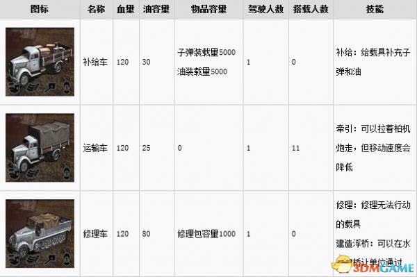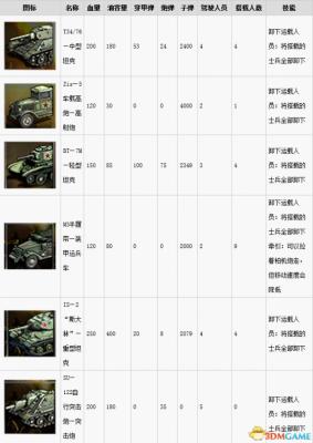 突袭4兵种及武器载具属性列表详解