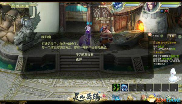 在余杭找到炼器职业导师欧阳南(531,139),与导师对话学习炼器技能。