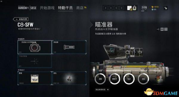 注:一般垂直进攻状态(从上打下或是从下打上)下的Buck可以选用一倍镜,大地图可以选择2.5倍镜;另外C8不建议安装激光,因为这样喷开的洞会相对比较大一点。